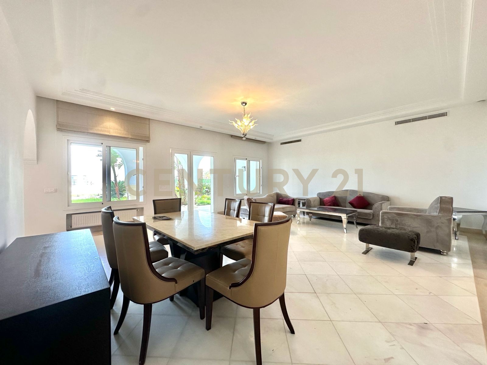L’agence immobilière Century 21 Invest vous propose pour la location un appartement S+3 richement meublé aux Jardins de Carthage. Typologie : S+3 Superficie : 220 m² Il se compose comme suit :...