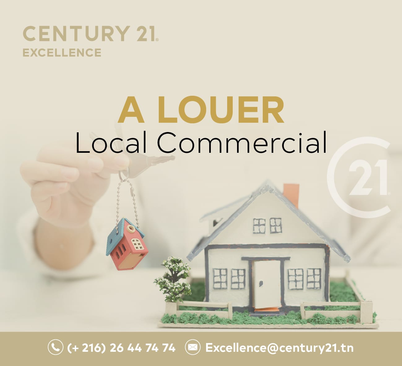 L’agence CENTURY 21 Excellence La Marsa vous propose à la location un local commercial d’une superficie de 62 m². Aménagement : – Open space modulable selon vos besoins – Salle d’eau Pour...
