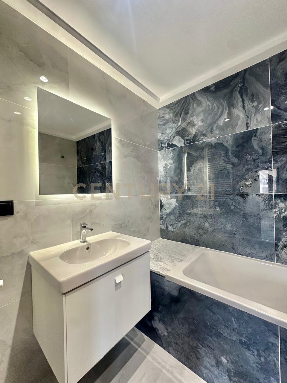 -Salle de bains avec baignoire.