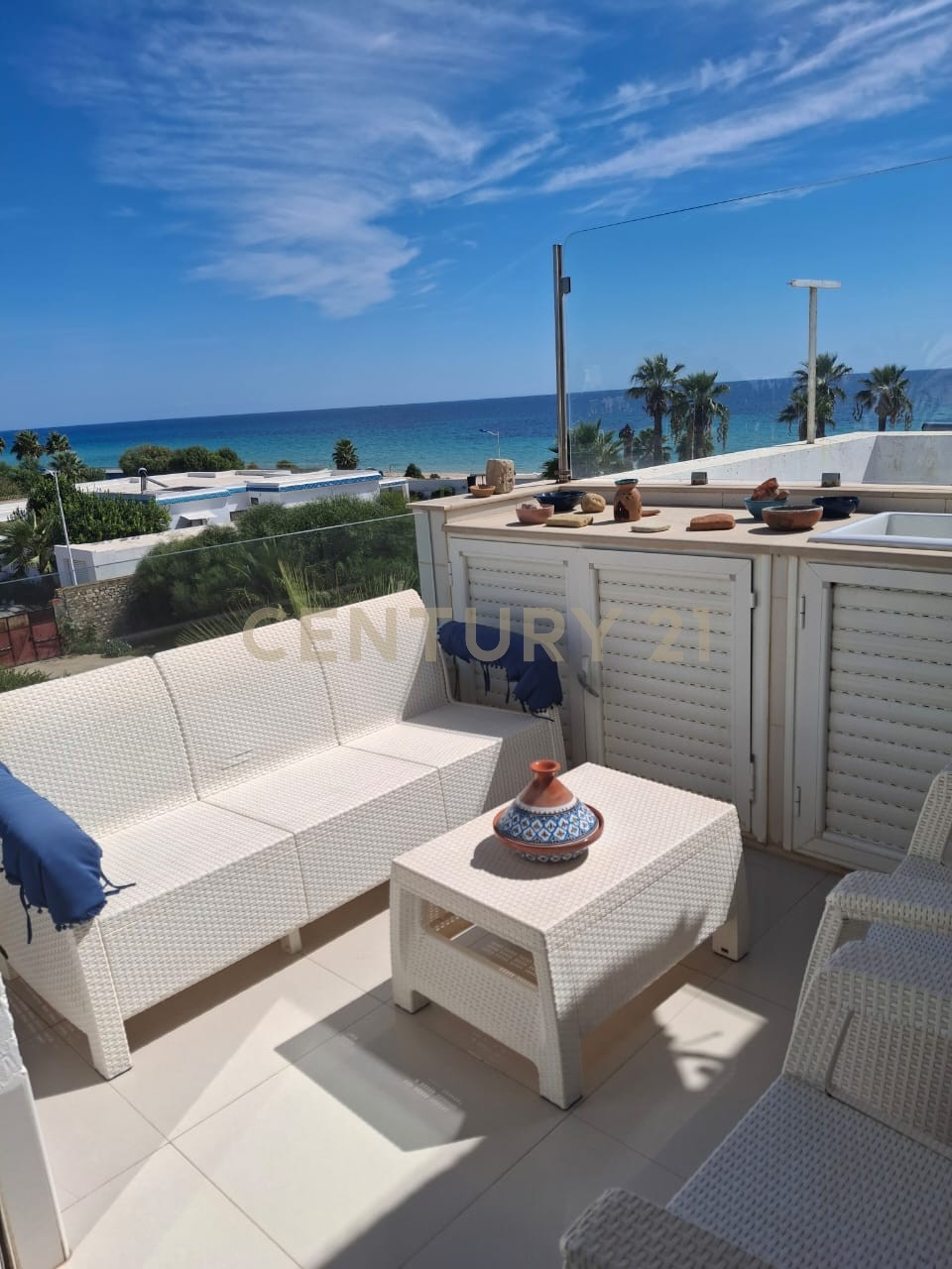L’agence Century21 Challenge vous propose à la location annuelle un appartement S+2 meublé, situé à Sidi Mahrsi Nabeul en première position par rapport à la plage. Ce bien se compose de : Un salon, Une cuisine équipée, Deux chambres avec dressing, Une salle d’eau et douche à l’italienne, Une terrasse avec vue sur la belle plage de Sidi Mahrsi.