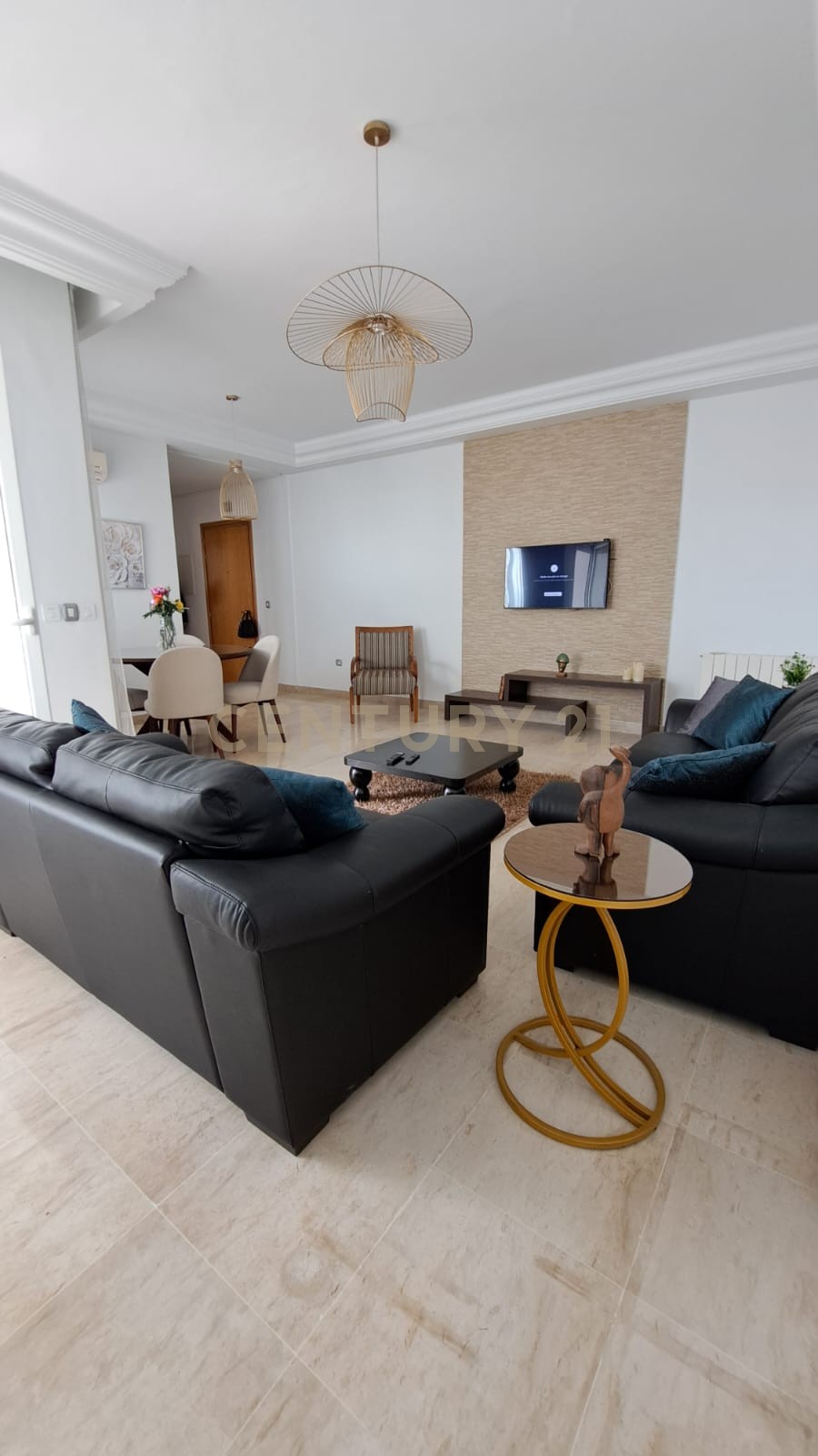Century 21 Infinity met à votre disposition un bel appartement S+2 entièrement meublé, situé au dernier étage dans une petite résidence calme à Jinène Eddonia, La Marsa (proche Carrefour).