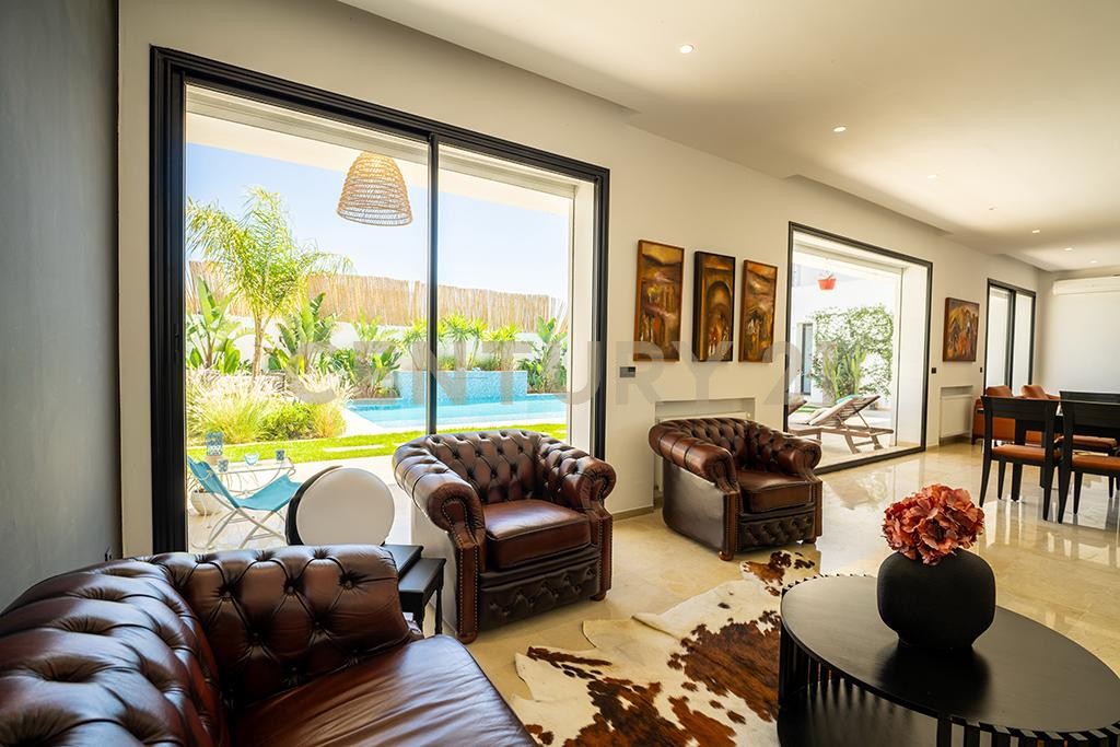 – Un double salon et salle à manger ouvrant sur le jardin et la piscine
