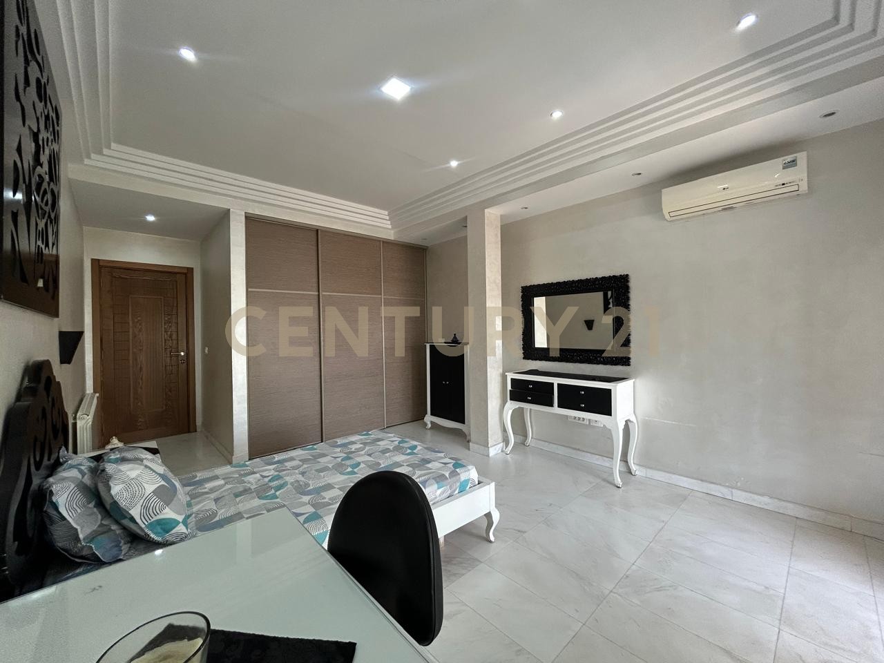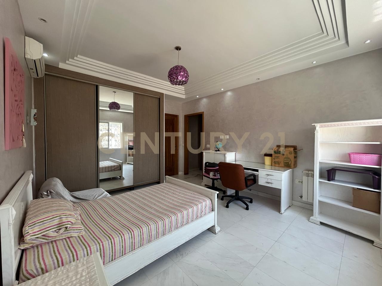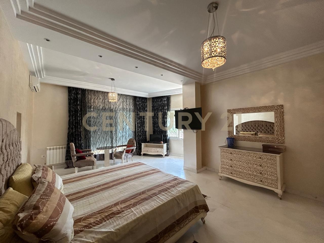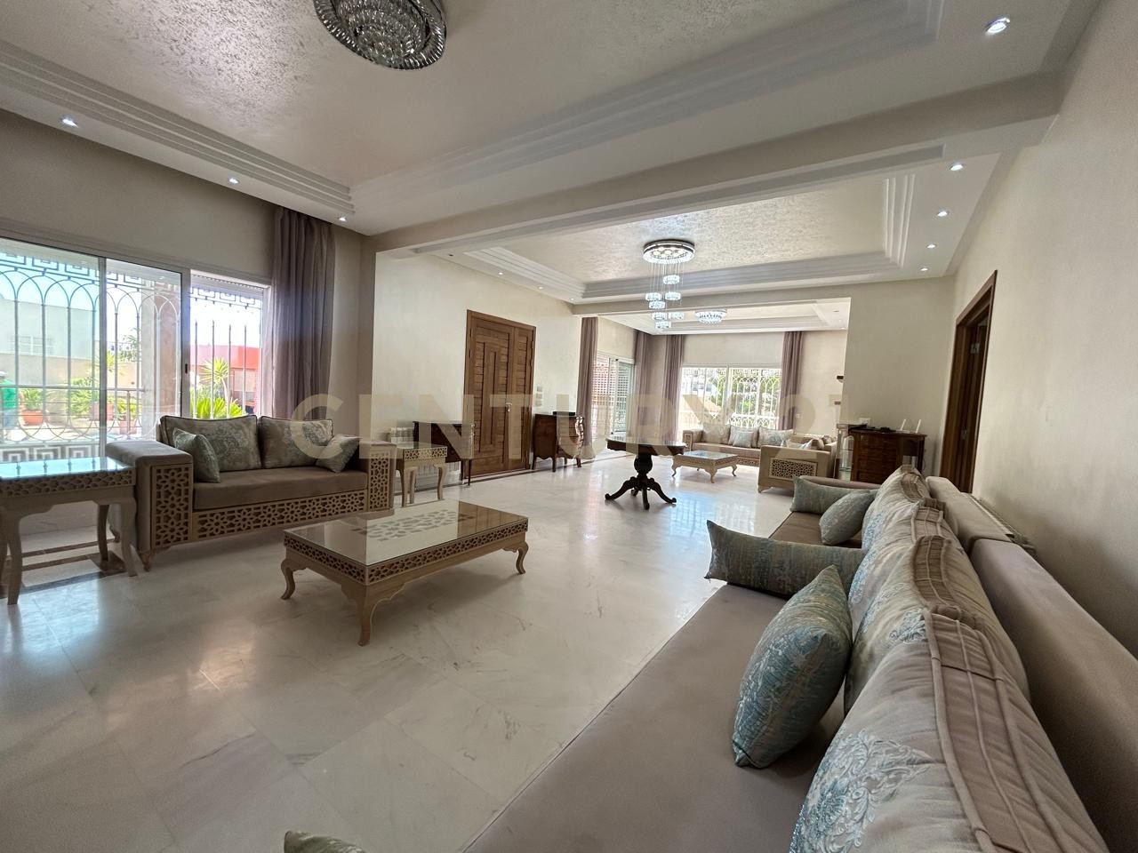 Century 21 Prestige vous propose à la location cette villa indépendante Meublé situé dans un quartier calme et sécurisé à Ennasr. Bâtie sur un terrain d’environ 1000m², elle se compose comme suit : Au RDJ : – Salon, salle à manger – Séjour – Salle d’eau pour les invités – Une première suite avec Salle de douche – Cuisine entièrement équipée – Garage pour 4 à 5 voitures – Cuisine de service – Chambres de service Au RDC : – Double Salon – Cuisine équipée – Deuxième suite – Salle d’eau pour les invités 1er étage : – Suite parentale avec salle de bain – Suite junior – Double Suite (Deux chambres séjour et une salle de bain) – Hammam Pour plus d’information ou pour organiser une visite, veuillez nous contacter au +216 29 018 498 ou au +216 28 100 146 ou au +216 20 092 000 Email : prestige@century21.tn