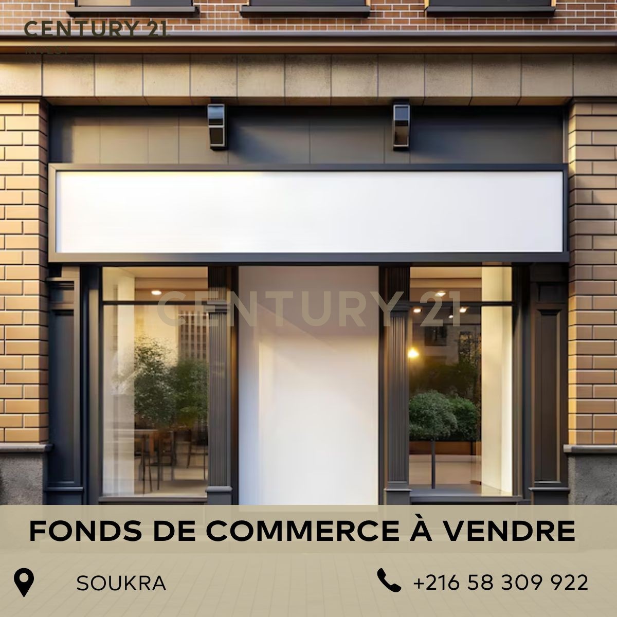 L’Agence Century 21 Invest vous propose pour la vente un fonds de commerce de 400m² à la Soukra.