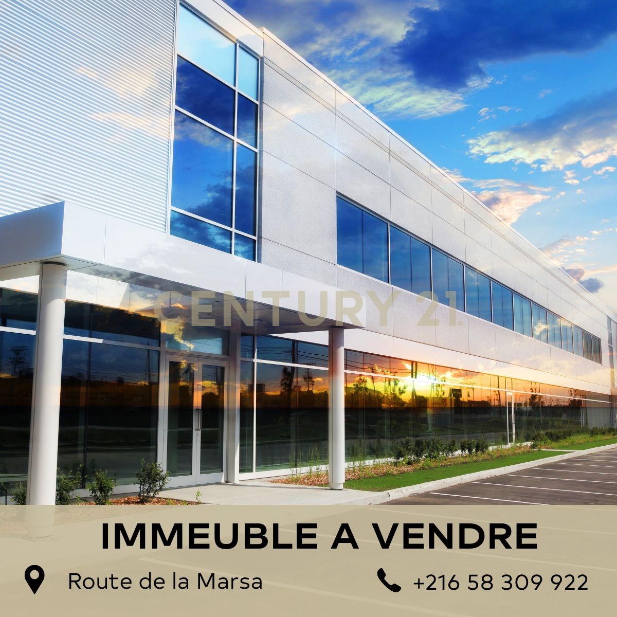 L’Agence Century 21 Invest vous propose pour la vente un immeuble inachevé R+3 de 1200m² de superficie, situé sur la route de la Marsa. Pour plus d’informations, veuillez nous contacter au +216 50 950 000.