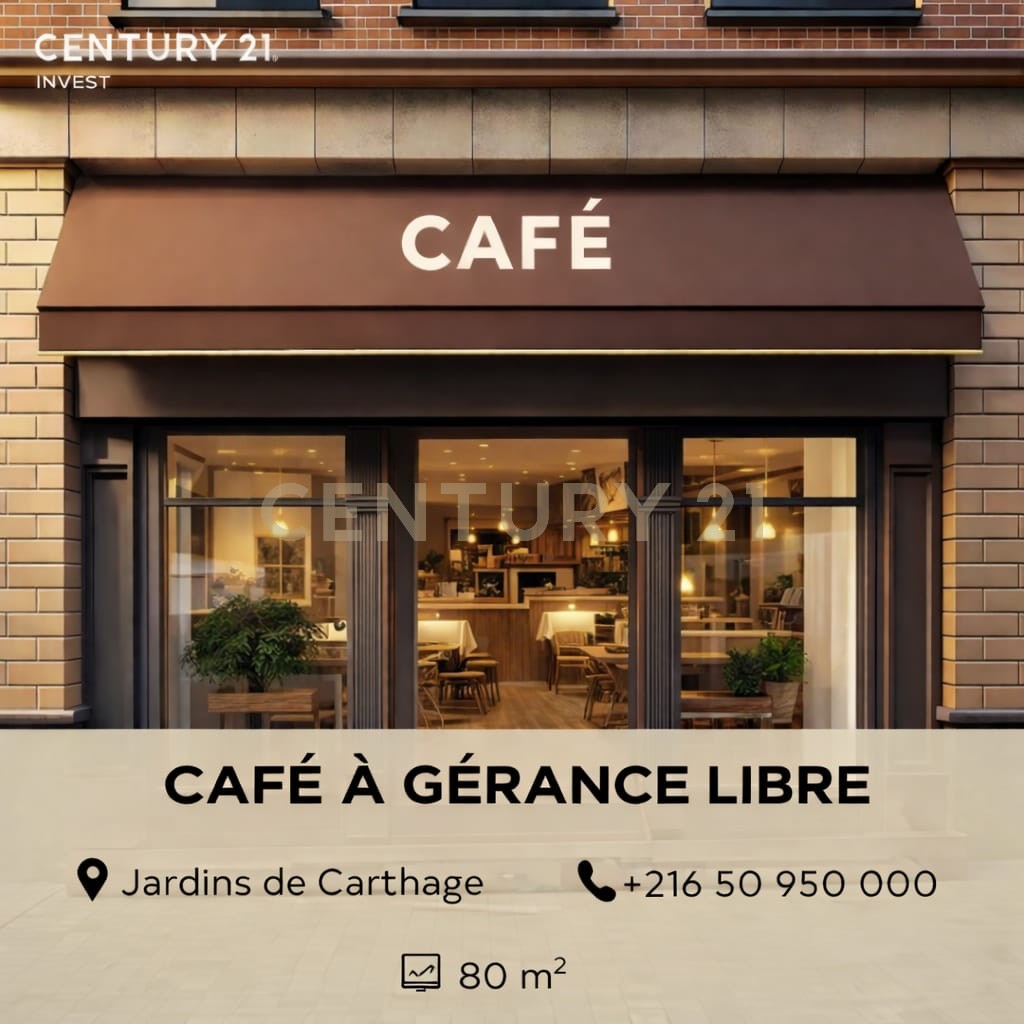 L’agence immobilière Century 21 Invest vous propose pour la location un café de 80 m² situé aux Jardins de Carthage, proposé en gérance libre. Bénéficiant d’un emplacement stratégique et d’une excellente visibilité,...