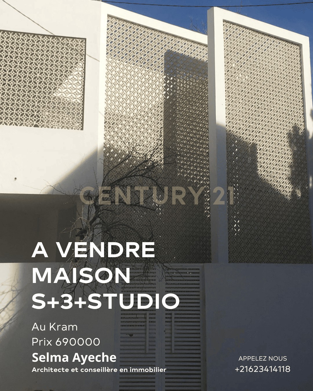 L’agence Century 21 INVEST vous propose pour la vente une maison S+3 avec studio indépendant, elle se situe au Kram à 200m de la mer . Elle se compose de : –...